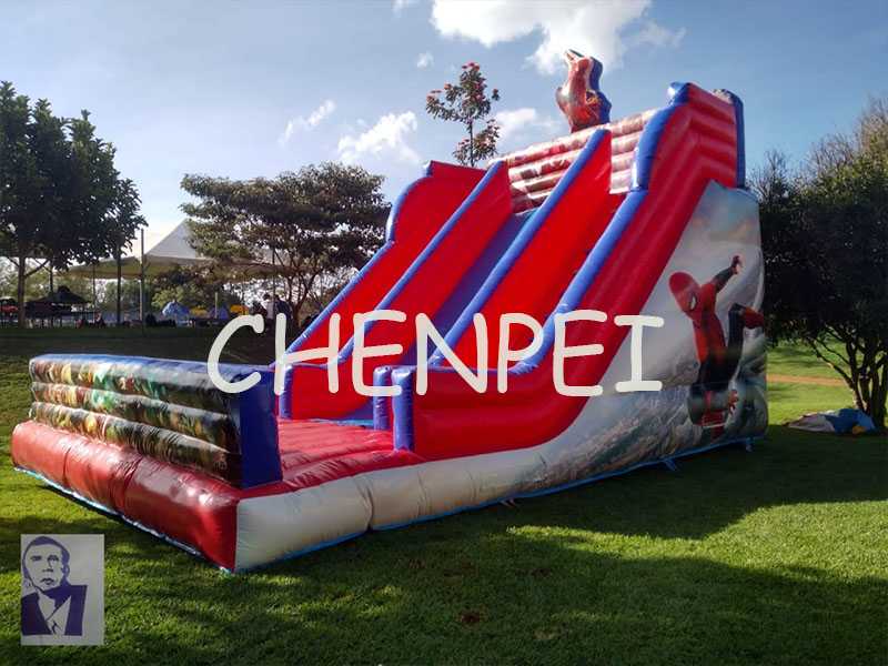 This is our new custom spiderman inflatable slide for customer.Double lanes inflatable slide.