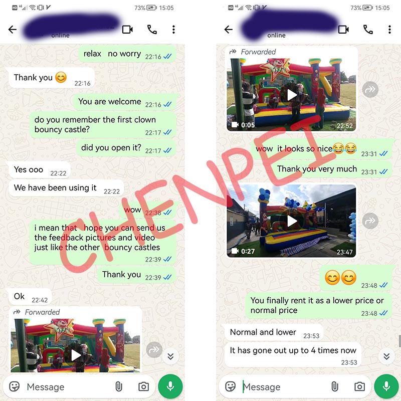 Chenpei inflatables factory is professional bouncy castle suppliers.We provide consult,sale,design,manufacture,delivery,after-sale all in one station service.So we want to share the feedback from our happy customer.